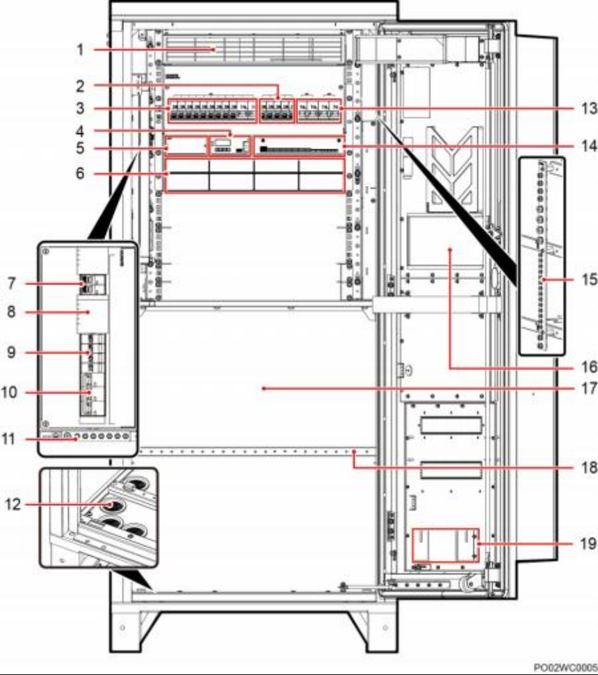 (13)电池支路空 开 | (14)用户接口模块 | (15)RTN+母排 |