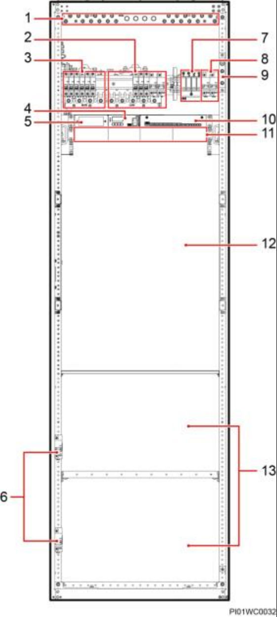 (10)用户接口模块 (11)整流模块或太阳能模块 (12)用户设备安装空间 UIM02C 安装空间 (16U)