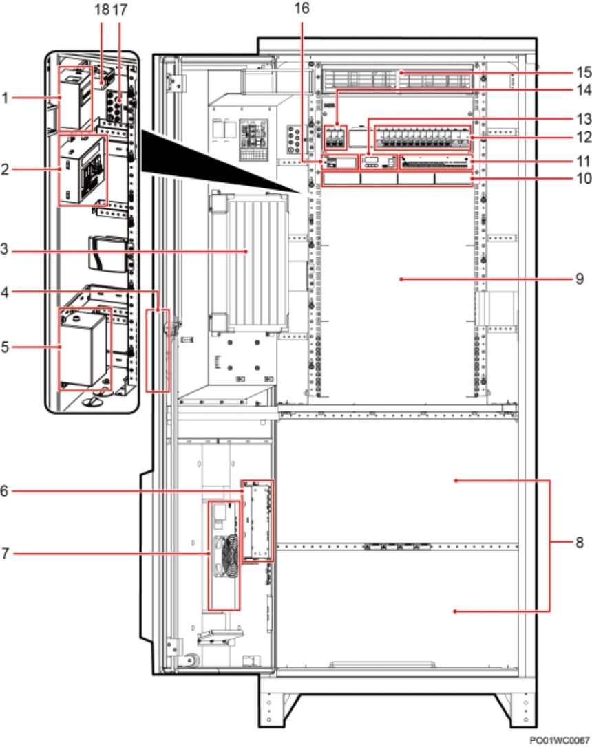 (16)电池强制上电开关 (17)机柜接地排 (18)电流互感器(选配)