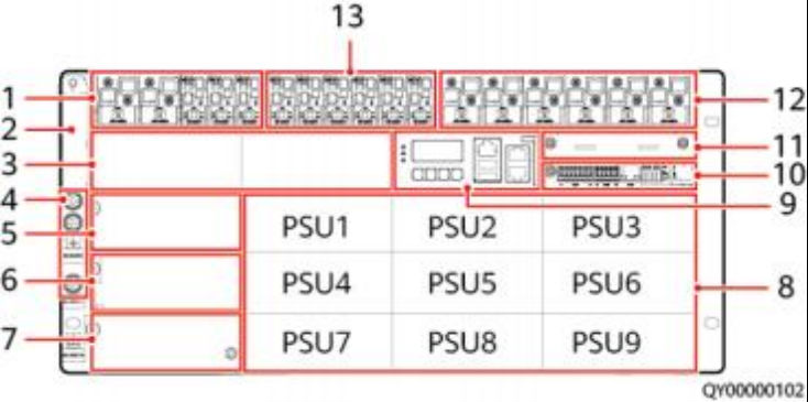 ( 7 )交流输入模块2安装空间 (8)整流模块R4850G2/ (9)监控模块SMU02C R4875G1安装空间