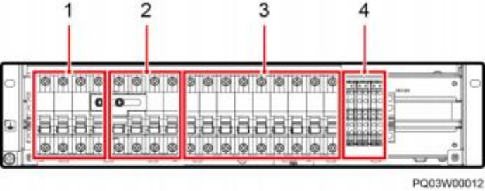 (1)直流配电单元 (2)交流配电单元 (3)接地螺丝