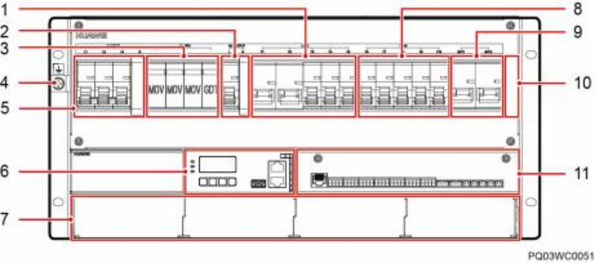 1 LLVD空开                         2)交流输出空开和端子          3)交流防雷器