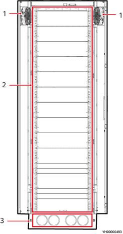 1 )风扇                                 2)用户设备安装空间              3)走线、走管孔
