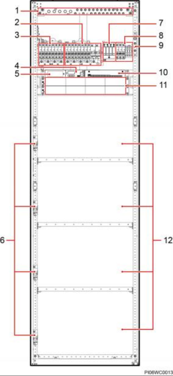 10)用户接口模块   11)整流模块或太阳能模块  12)电池安装空间 UIM02C                             安装空间